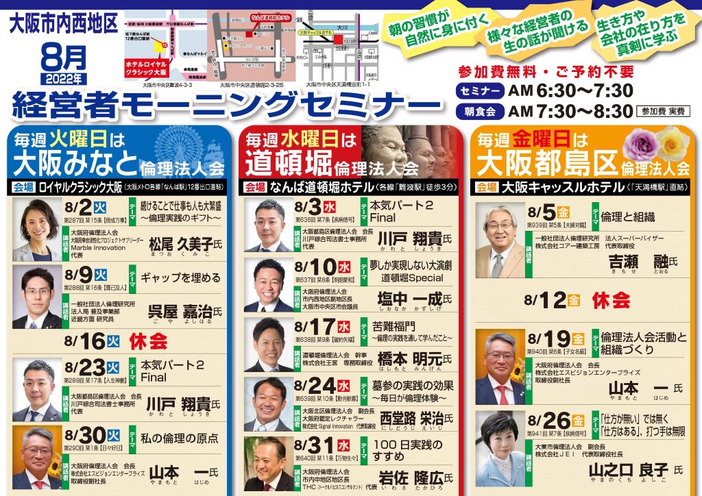 - #627 道頓堀倫理法人会モーニングセミナー 大阪府倫理法人会 山本一会長